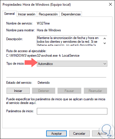 2. Comprobar el servicio de hora de Windows 10 para solucionar error al sincronizar hora