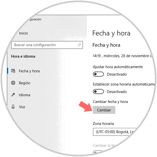 3. Definir la hora en Windows 10 de forma manual para solucionar error al sincronizar hora