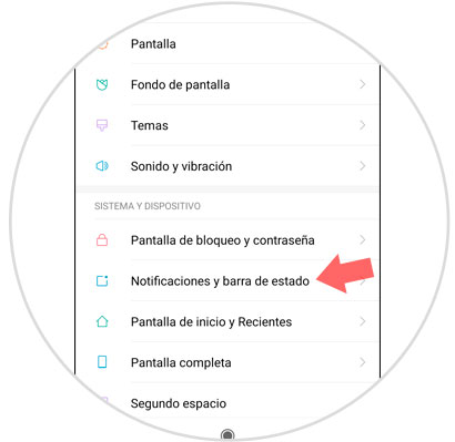 Entre las opciones disponibles, verás una que es “Notificaciones y barra de estado”. Desliza hasta la misma y pulsa sobre ella para continuar.