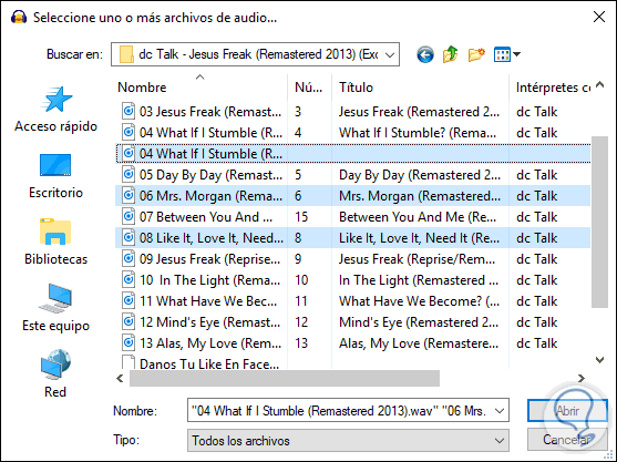 Pulsamos en Abrir para añadirlos, ahora iremos a la segunda pista y usaremos las teclas Ctrl + A para seleccionarla: