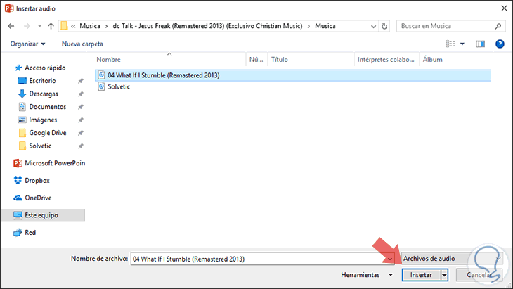 Seleccionamos el archivo y pulsamos en el botón Insertar para agregarlo a la presentación: