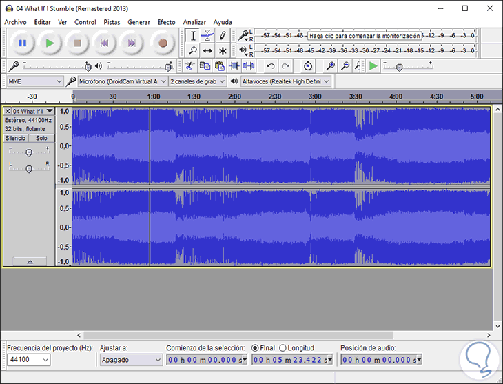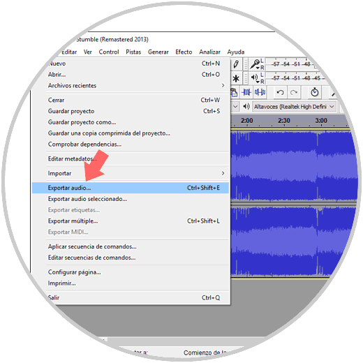 Allí podemos mover el archivo a la ubicación deseada y podemos observar que automáticamente se crea un nuevo menú llamado Herramientas de audio en el cual podemos llevar a cabo acciones como: