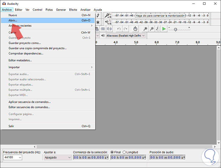Una vez descargado, procedemos a su ejecución e iremos al menú Archivo / Abrir o bien podemos usar las teclas Ctrl + O: