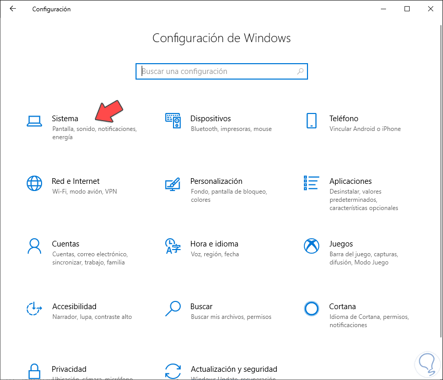 Veremos lo siguiente. Allí iremosa la categoría "Actualización y seguridad".