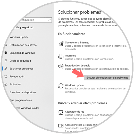 Windows 10 integra una utilidad llamada "Solucionador de problemas" gracias a la cual será posible analizar un parámetro del sistema y determinar errores con el fin de dar una solución automática o una serie de consejos sobre cómo corregir dicho error.
