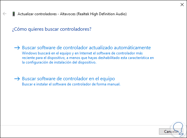 Se desplegará la siguiente ventana donde podemos actualizar el controlador de dos formas diferentes que son: