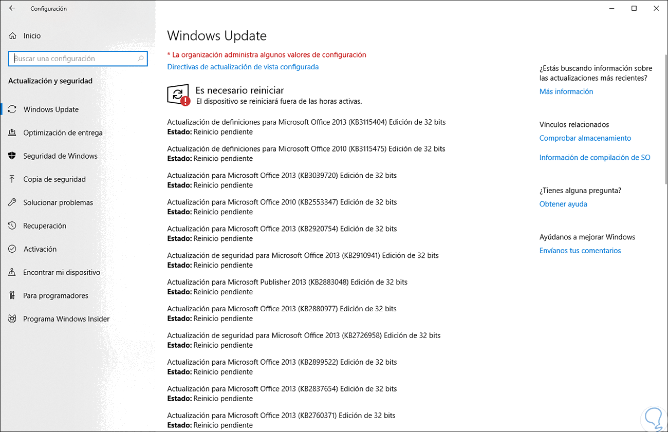 - En la sección Windows Update validar que actualizaciones están disponibles y aplicarlas: