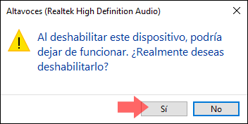 Se desplegará la siguiente ventana emergente. Allí pulsamos en el botón "Si" y después de esto debemos reiniciar Windows 10 para que el sistema reinstale automáticamente el controlador adecuado.