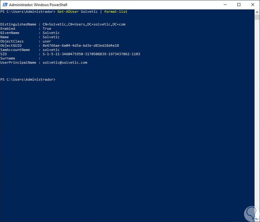 Así de sencillo será posible acceder no solo al SID o nombre de un usuario sino también identificar muchos más parámetros de este lo cual es de valiosa ayuda para todo tipo de tareas de administración o gestión que debemos llevar a cabo en Windows Server 2016 o 2019.