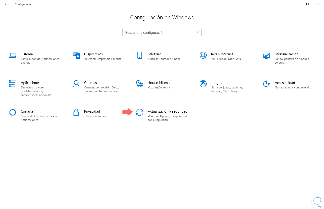 Allí iremos a la categoría “Actualización y seguridad” y en la nueva ventana iremos a la sección “Windows Update”: