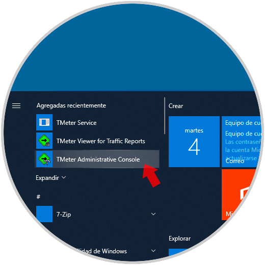 Cuando se haya instalado, debemos acceder a la opción “TMeter Administrative Console”: