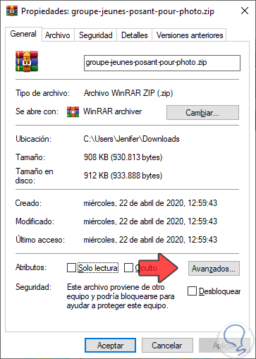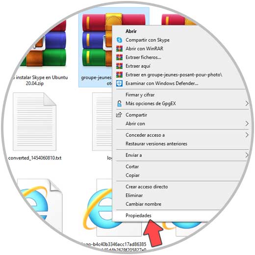 Nos iremos a nuestro archivo RAR y haremos clic derecho - Propiedades: