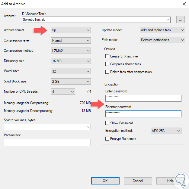 2. Contraseña archivo ZIP Windows 10 7ZIP