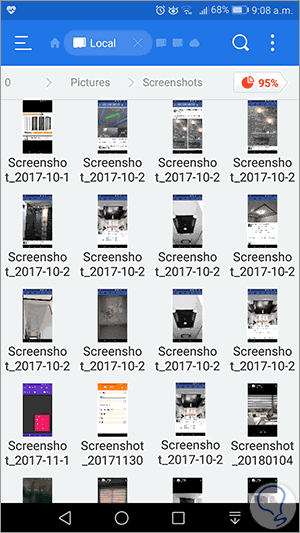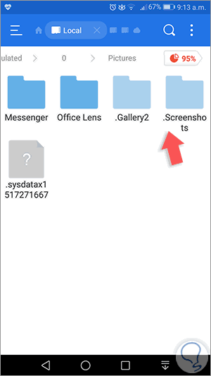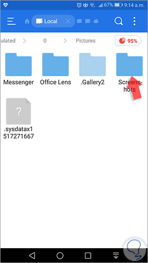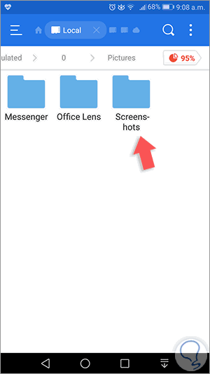 Una vez instalado, podremos acceder desde el a todas las carpetas y subcarpetas de Android, por ejemplo, en este caso hemos accedido a las carpetas de capturas de pantalla (Screenshots):