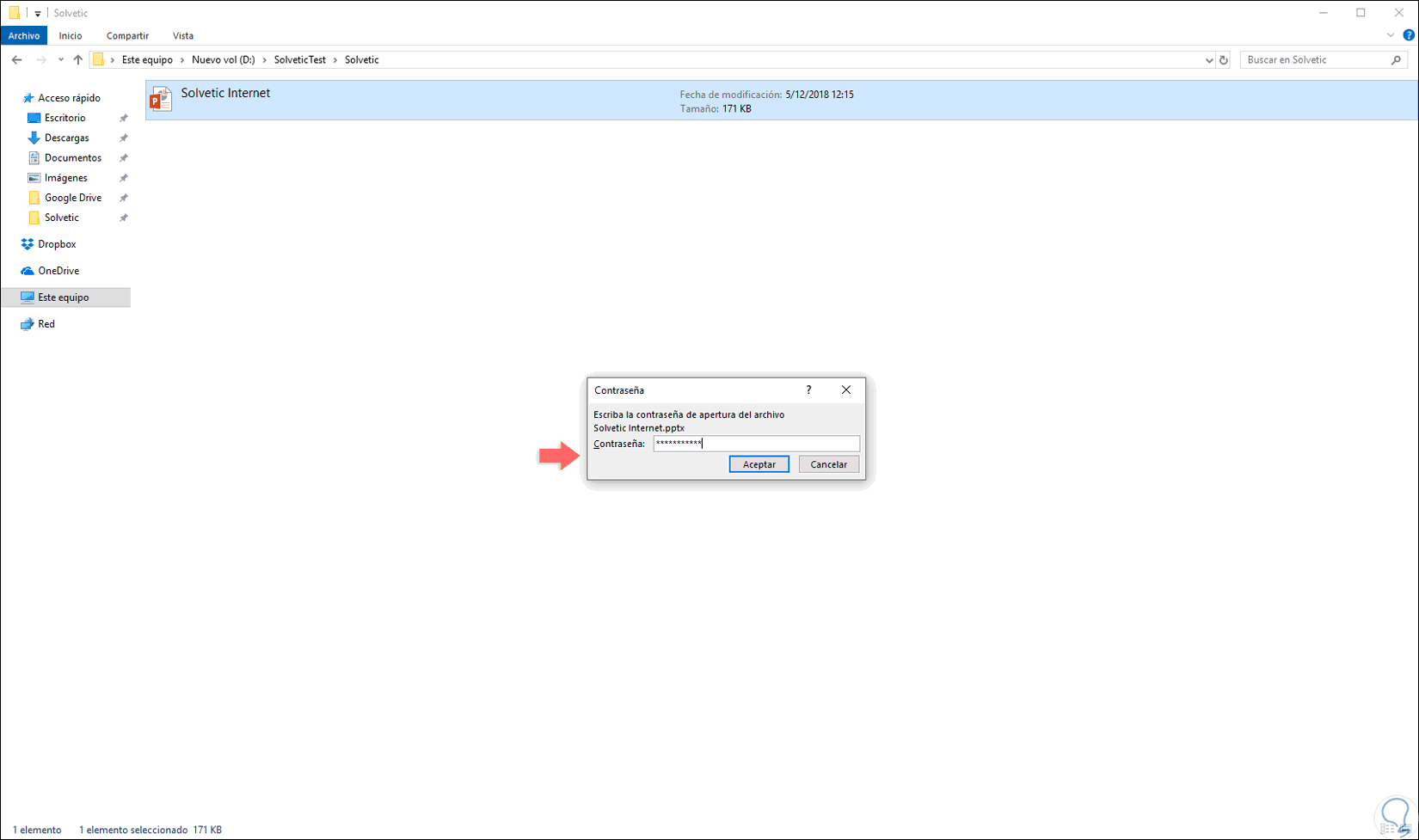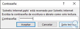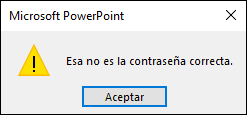 Una vez ingresada pulsamos en Aceptar para confirmar la acción. Ahora, cuando intentemos acceder a esta presentación veremos lo siguiente: