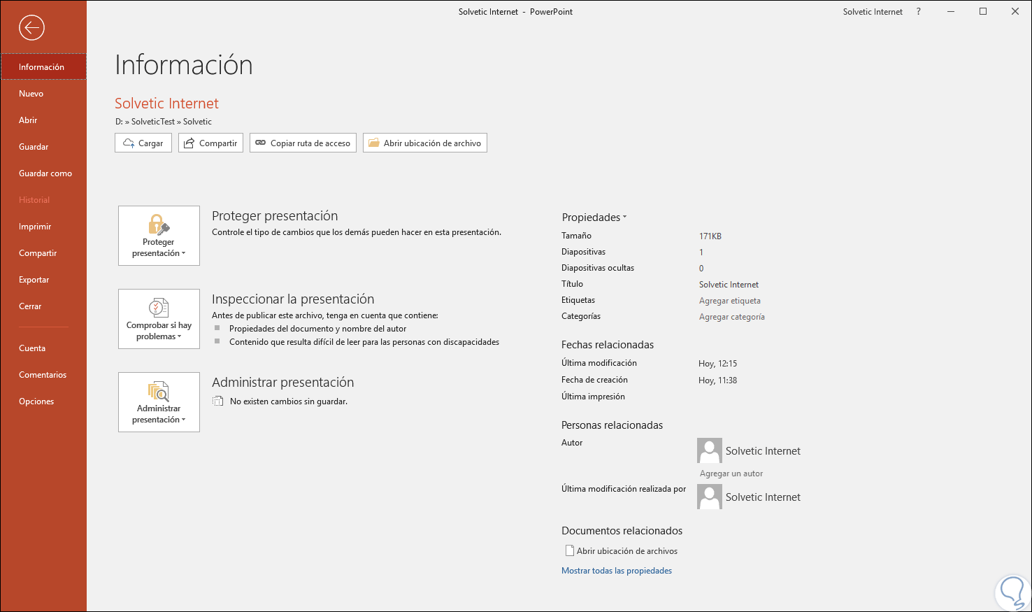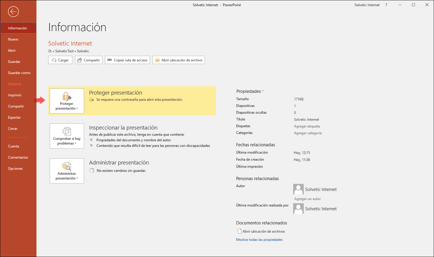 Al acceder a la presentación, en el campo “Información”, veremos que se indica la necesidad de usar una contraseña para acceder: