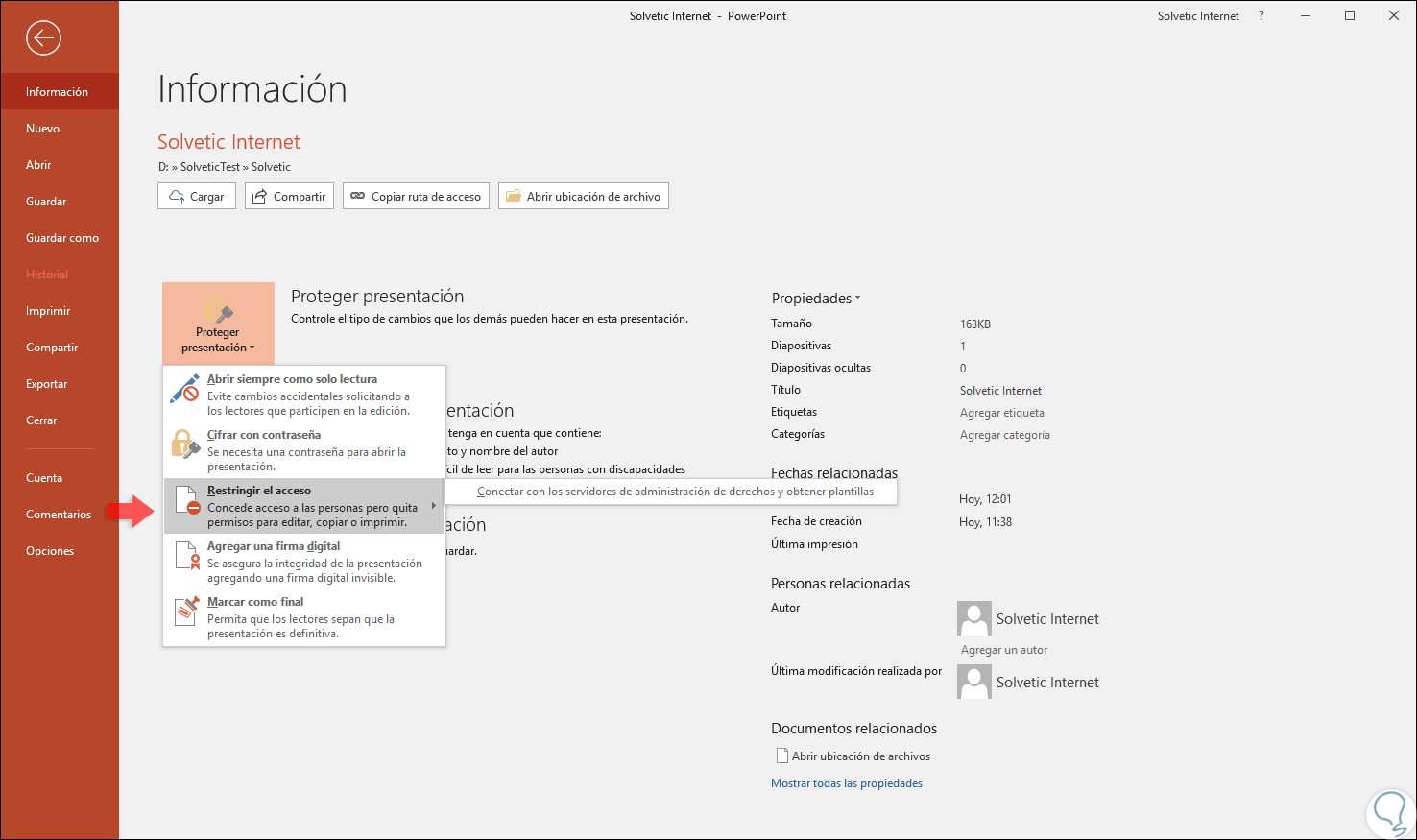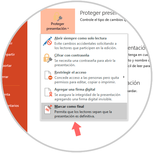 2. Bloquear presentación usando restricción de acceso en PowerPoint 2019, 2016