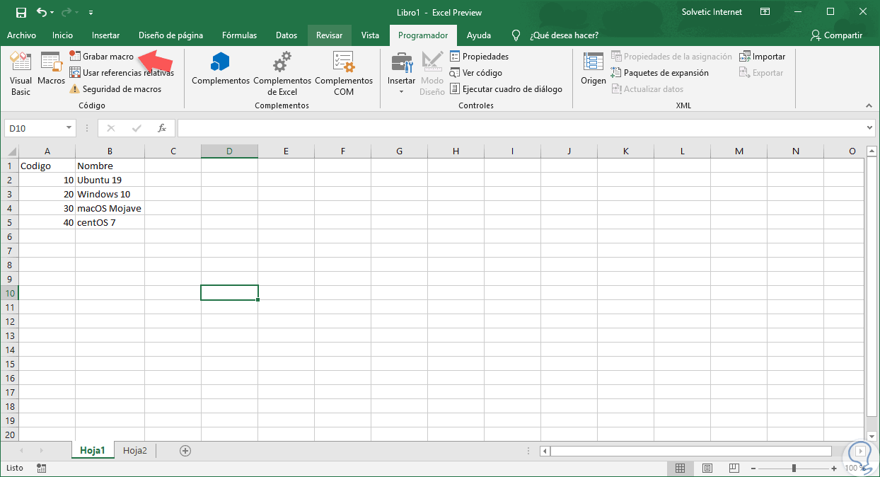 1. Cómo grabar una macro en Excel 2019, 2016