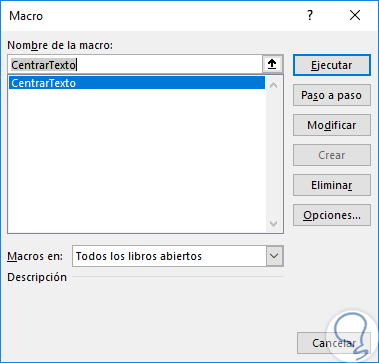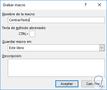 - Nombre a asignar a la macro.