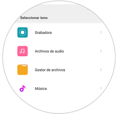 Si quieres poner una canción o algún audio que tengas guardado en el móvil, debes seleccionar "Tono de llamada local" y entrarás en una nueva pestaña en la que vas a encontrar las siguientes opciones.