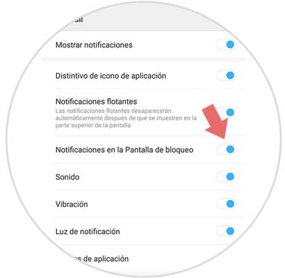 Una vez dentro, en el apartado “Notificaciones en pantalla de bloqueo”, activa o desactiva la pestaña deslizando hacia la derecha o la izquierda y activarás o desactivarás las notificaciones de esa App en concreto en la pantalla de tu Xiaomi Mi 8 de manera sencilla.