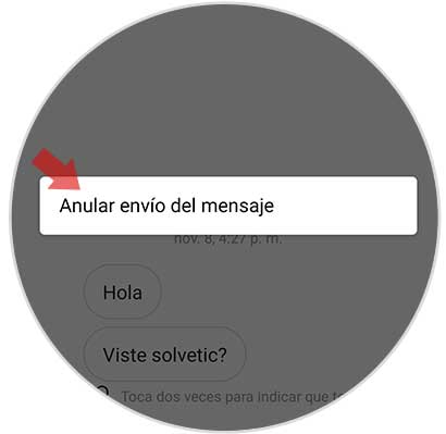 Verás que aparece una ventana emergente en la que pone “Anular envío del mensaje”. Debemos pulsar sobre esta ventana.