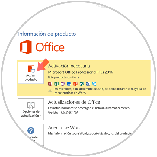 Del mismo modo, en la ruta "Archivo / Cuenta" será posible comprobar que Word se encuentra desactivado: