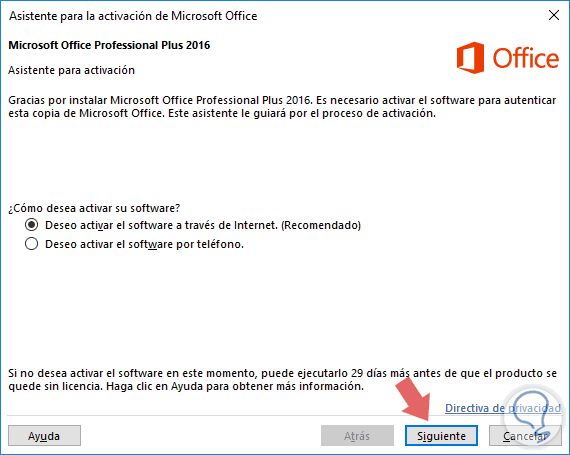 Microsoft Word integra un asistente de activación el cual ha sido desarrollado para llevar a cabo el proceso de activación de una forma dinámica y completa.