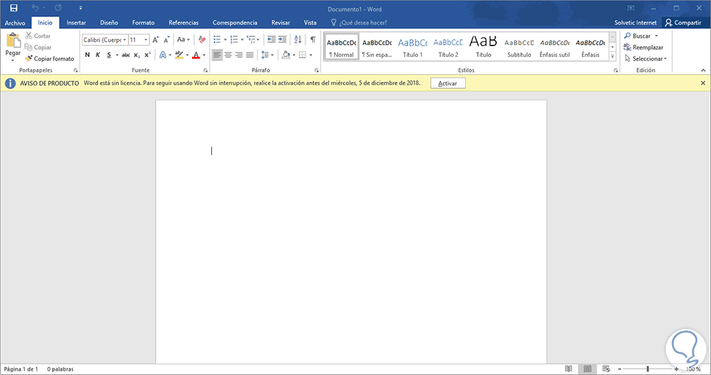 Ahora, para usar todas estas funciones sin ningún problema se requiere que nuestra copia de Word 2016 o 2019 este activa ya que de lo contrario solo podremos hacer uso de Word por un periodo de 5 días para que luego se restrinja el acceso a estas utilidades. Al activar Microsoft Word también aumentamos la seguridad de la aplicación ya que podremos acceder al soporte de Microsoft y poder recibir actualizaciones frecuentes. Solvetic explicará como podemos activar Microsoft Word de forma funcional y práctica.