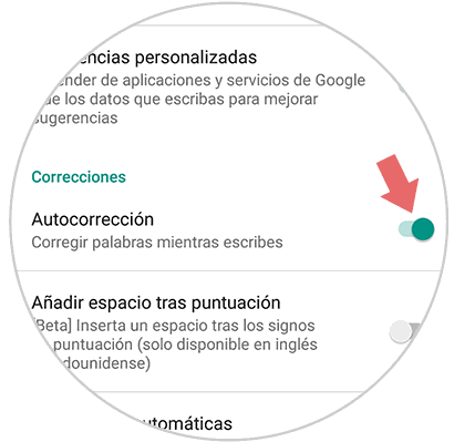 Al final de la pantalla, desactiva la pestaña en el apartado “Autocorrección” y habrás desactivado el auto corrector en la App de WhatsApp y en por consecuencia todas las que utilicen el teclado Gboard en tu móvil.