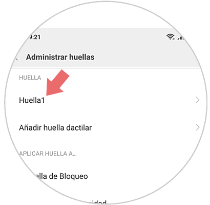 Ahora veras las huellas que has configurado. Selecciona aquella que quieres borrar.