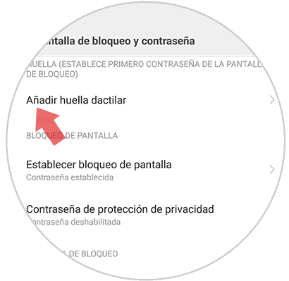 Una vez dentro, verás en la parte superior un apartado en el que pone "Añadir huella dactilar"