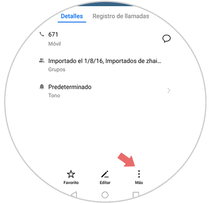 Ahora aparecerá en la libreta de tu teléfono. En función del modelo de móvil que tengas, la interfaz puede variar. Selecciona en la parte inferior “Mas”.
