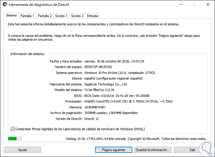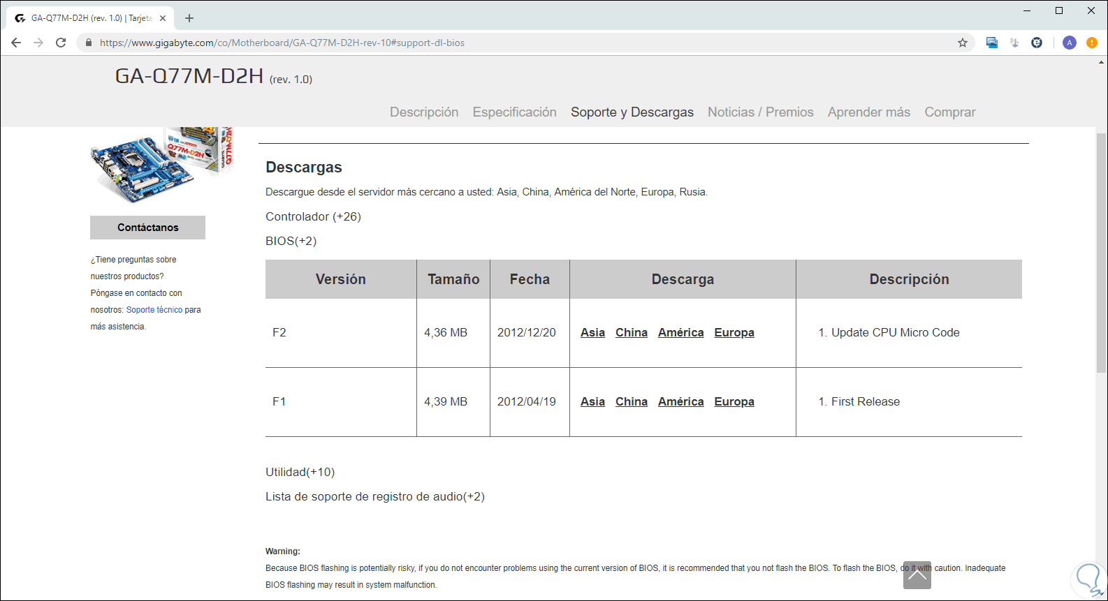 Allí encontramos detalles puntuales del sistema. Ahora, con la información de la board, podemos ir al sitio web del desarrollador y allí descargar la última actualización para el BIOS: