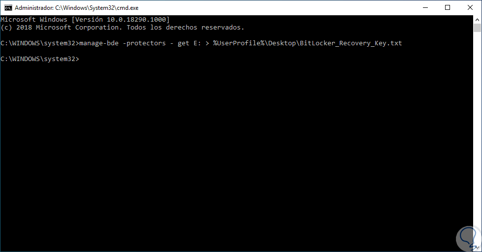 manage-bde -protectors -get <Letra unidad>: > %UserProfile%\Desktop\BitLocker_Recovery_Key.txt