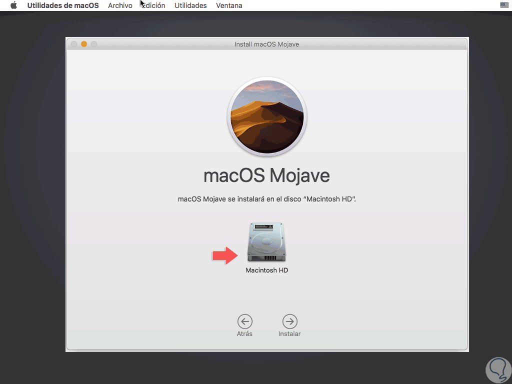 Una vez seleccionada esta opción aceptaremos los términos de la licencia y procedemos a definir en cuál disco se ha de instalar macOS Mojave: