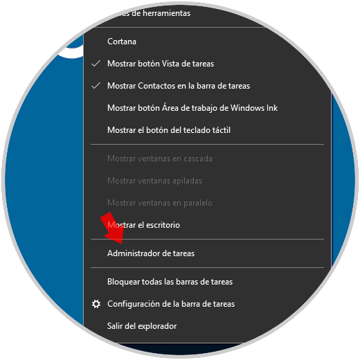 Para este proceso pulsaremos de forma simultánea las teclas siguientes y luego daremos clic derecho sobre la barra de tareas, veremos lo siguiente: