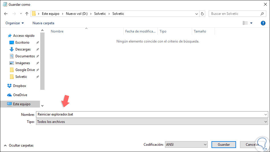 - En el nombre asignado debemos finalizar con la extensión .bat.