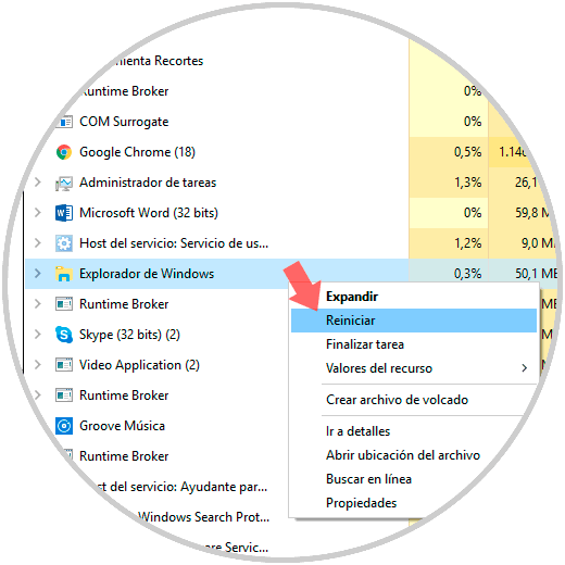 1. Reiniciar el proceso explorer.exe usando el Administrador de tareas Windows 10