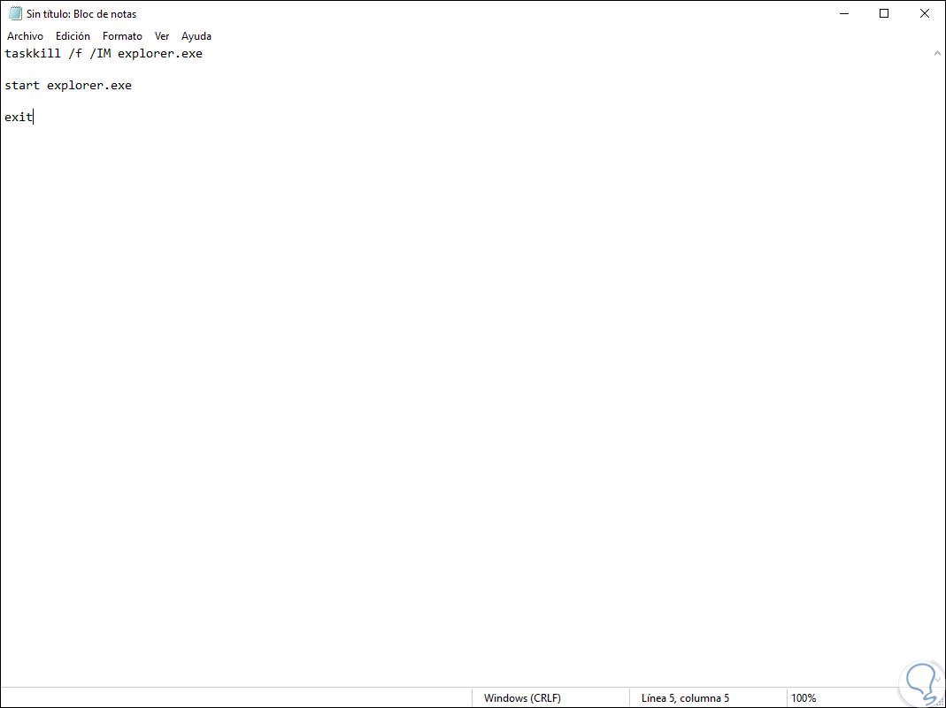 4. Reiniciar el proceso explorer.exe usando un archivo Batch Windows 10