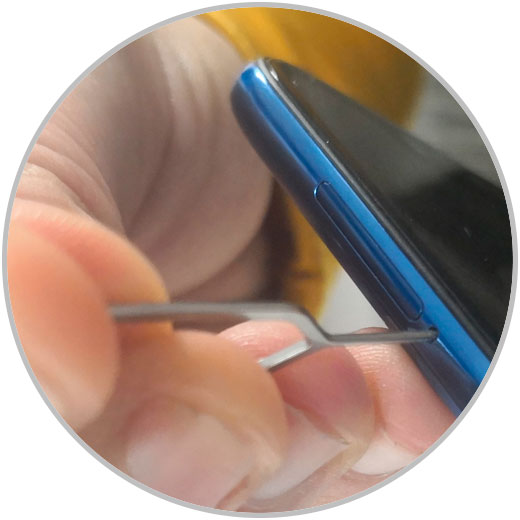 En el costado izquierdo del terminal, verás un pequeño agujero. Introduce la llave aquí y haz un poco de presión hasta que salga la bandeja de la Nano SIM.