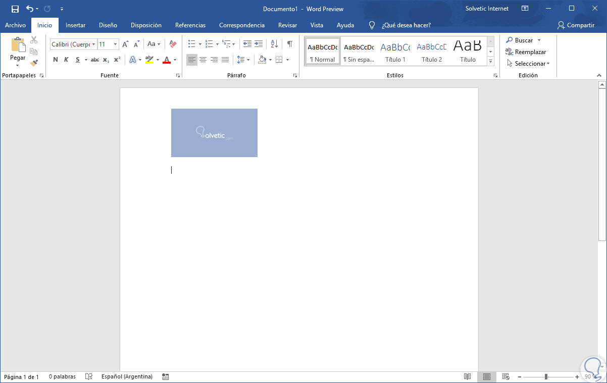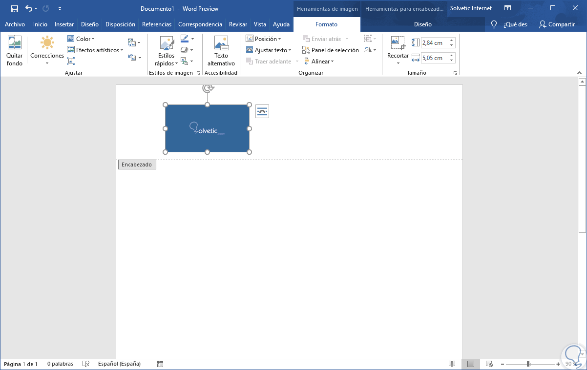 Pulsamos en el botón “Insertar” y dicha imagen será añadida en el encabezado de Word 2016 o 2019, allí podremos ajustar el tamaño según sea necesario: