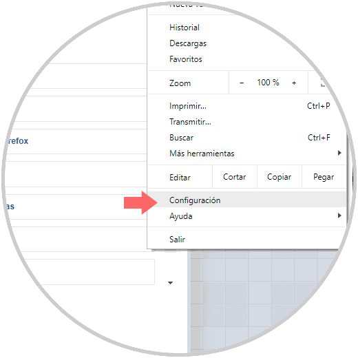 Para activar Flash Player en un sitio en particular, pulsamos en el menú “Personaliza y controla Google Chrome” y en las opciones desplegadas seleccionamos “Configuración”: