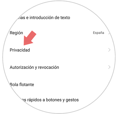 Selecciona “Privacidad” para configurar este aspecto en tu Xiaomi Mi 8.