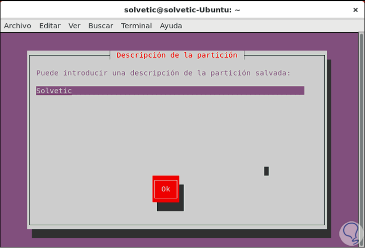Definido esto pulsamos la tecla F5 y ahora podemos ingresar una descripción de la partición: