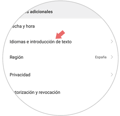 Aparecerás en una nueva pantalla, en la cual en su parte superior verás la opción “Idioma e introducción de texto”. Pulsa aquí.