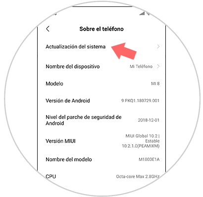 2. Actualizar Xiaomi Mi 8 para solucionar problema de sonido