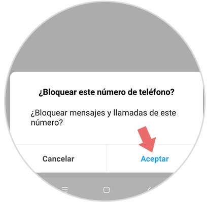 Aparecerá de nuevo una ventana emergente en la que se nos pregunta si queremos bloquear ese contacto. Si estamos de acuerdo con esto, pulsamos en "Aceptar". A partir de este momento, ya no recibiremos más llamadas ni mensajes de este número.