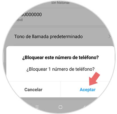 Veremos que aparece una ventana emergente en la que se nos pregunta si queremos bloquear ese contacto. Para confirmar el proceso debemos pulsar en "Aceptar". A partir de este momento, ya no recibiremos más llamadas ni mensajes de este número.