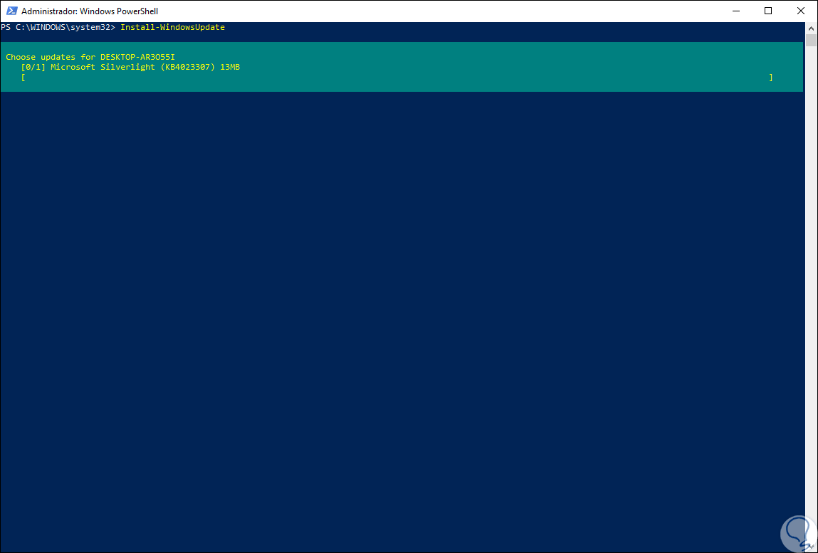 Para usar Windows PowerShell con el objetivo de buscar y descargar actualizaciones, debemos acceder a este como administradores y en primer lugar ejecutar el siguiente cmdlet: